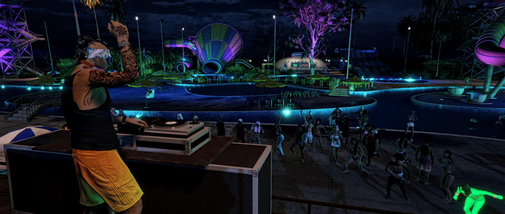 As the sun dipped low, casting a warm glow over the tranquil waters, Roxwood Water Park transformed into a lively hub. DJ Jersey set up his music on the sandy beach, the beat blending with the soothing sound of the waves.